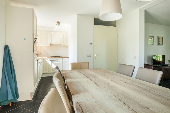 Indeling begane grond : Voorentree met hal, meterkast, trapopgang, toilet en toegang tot de woonkamer en 2 slaapkmaers. De woonkamer is zeer ruim (circa 37m2) en kent een mooie hoek-opgestelde keuken. De keuken is uitgerust met een houtlook werkblad, 4-pits gasfornuis, multifunctionele oven, afzuigkap, vaatwasser, dubbele wasbak en koelkast met vriesvak. De woning is volledig gemeubileerd, stoffering en verlichting zijn reeds aangebracht.