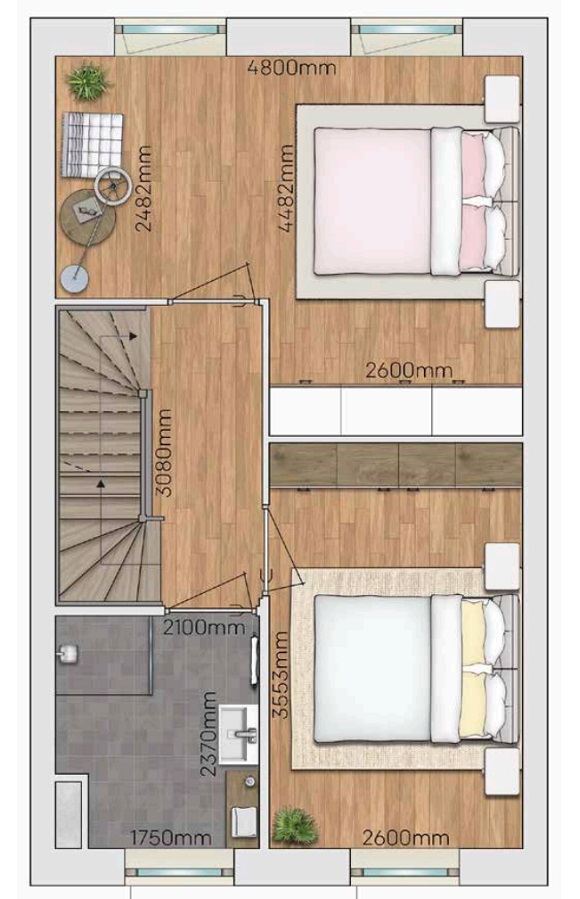 Indeling 1e verdieping : Via de trap komt u op de eerste verdieping met twee mooie slaapkamers, een kantoor en een badkamer. De badkamer is voorzien van douche, 2e toilet, en wastafel. Voor alle ruimten geldt dat deze eveneens zijn voorzien van vloerbedekking en raamdecoratie.